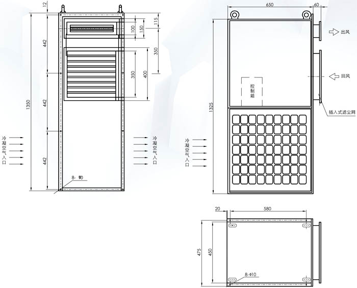 产品名称: T-2.5特殊冷风机结构及安装外形图